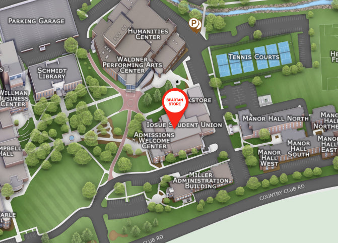 The Spartan Store is located in the lower level of the Student Union Building on the York College campus.